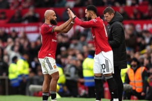 曼联首发:拉门斯;达洛特、马奎尔、利马、卢克·肖;梅努、卡塞米罗;阿玛德、B费、姆伯莫;库尼亚