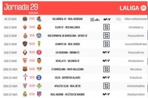 体育资讯2月24日讯 西甲官方公布了联赛第29轮各场比赛时间,3月22日21点巴萨主场对阵巴列卡诺,23日凌晨4点皇马vs马竞。