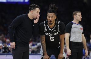 马刺榜眼秀迪伦·哈珀全场大部分时间都很亮眼,但最后时刻2罚全丢险些葬送好局。