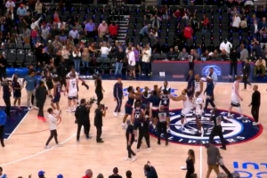 GIF-快船森林狼比赛结束 马瑟林和纳兹·里德因比赛用球的归属发生接触 险酿冲突