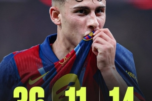 本赛季,费尔明展示出了非常出色的状态,在为巴萨出战36次比赛首发26场的情况下,他打进11球并送出14次助攻