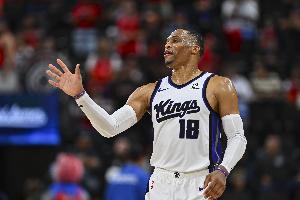威少首节送出2助攻,生涯总助攻数来到10335个,超越马克·杰克逊,追平纳什,并列历史第5,排在第4的是詹姆斯。