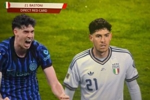 红牌!红牌!巴斯托尼犯罪了!不要给意大利人任何的机会!伟大的意大利中后卫!这一刻他不是一个人在战斗!他不是一个人!马特拉齐今天愚人节快乐!!!