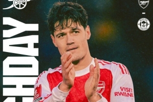 赛前,阿森纳官方社媒晒出本场海报,中场球员诺尔高单人出镜。