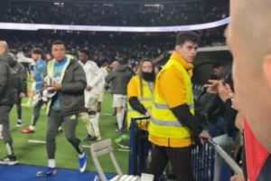 姆巴佩此役担任替补,没有出场,赛后他将球衣送给一位小球迷,能够得到姆巴佩的球衣,小球迷非常激动。
